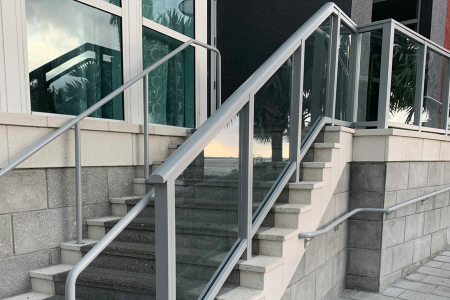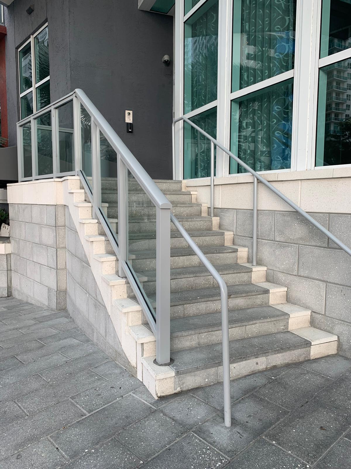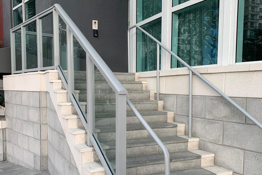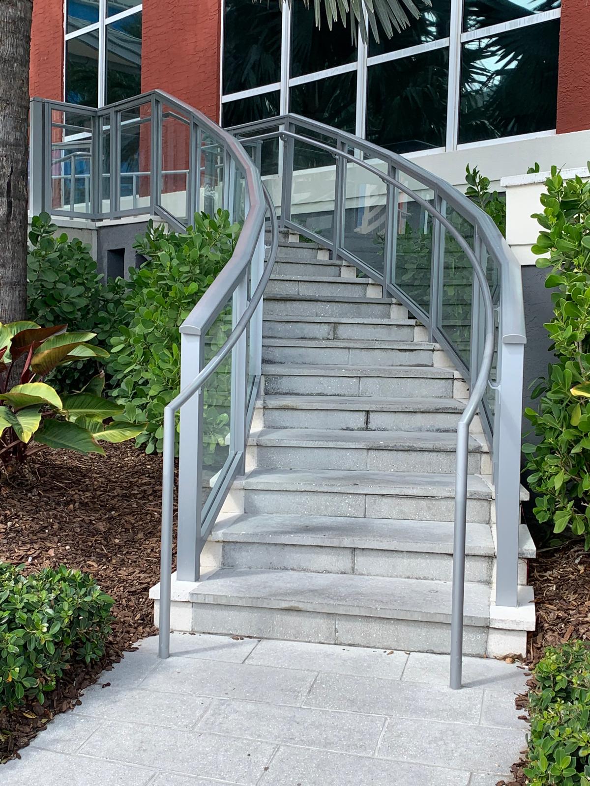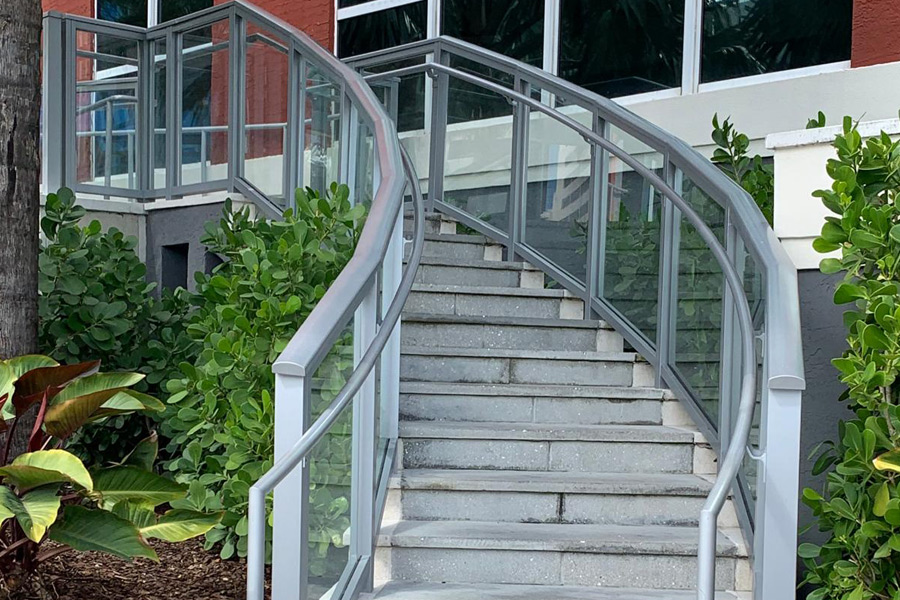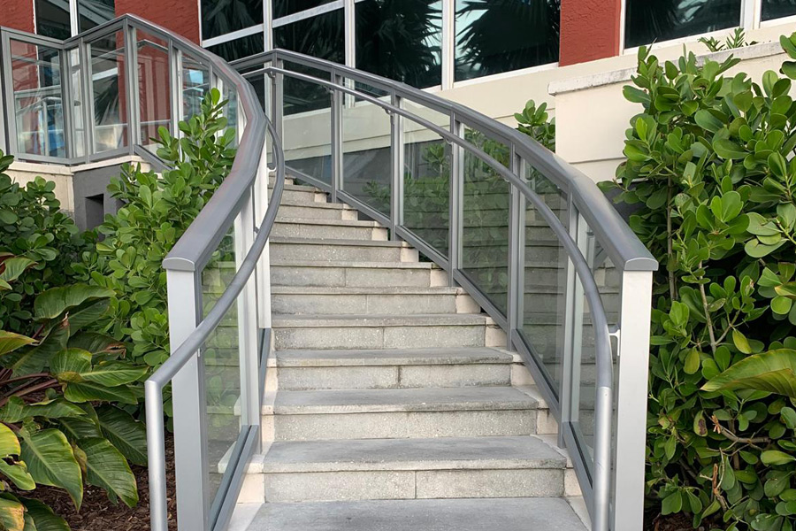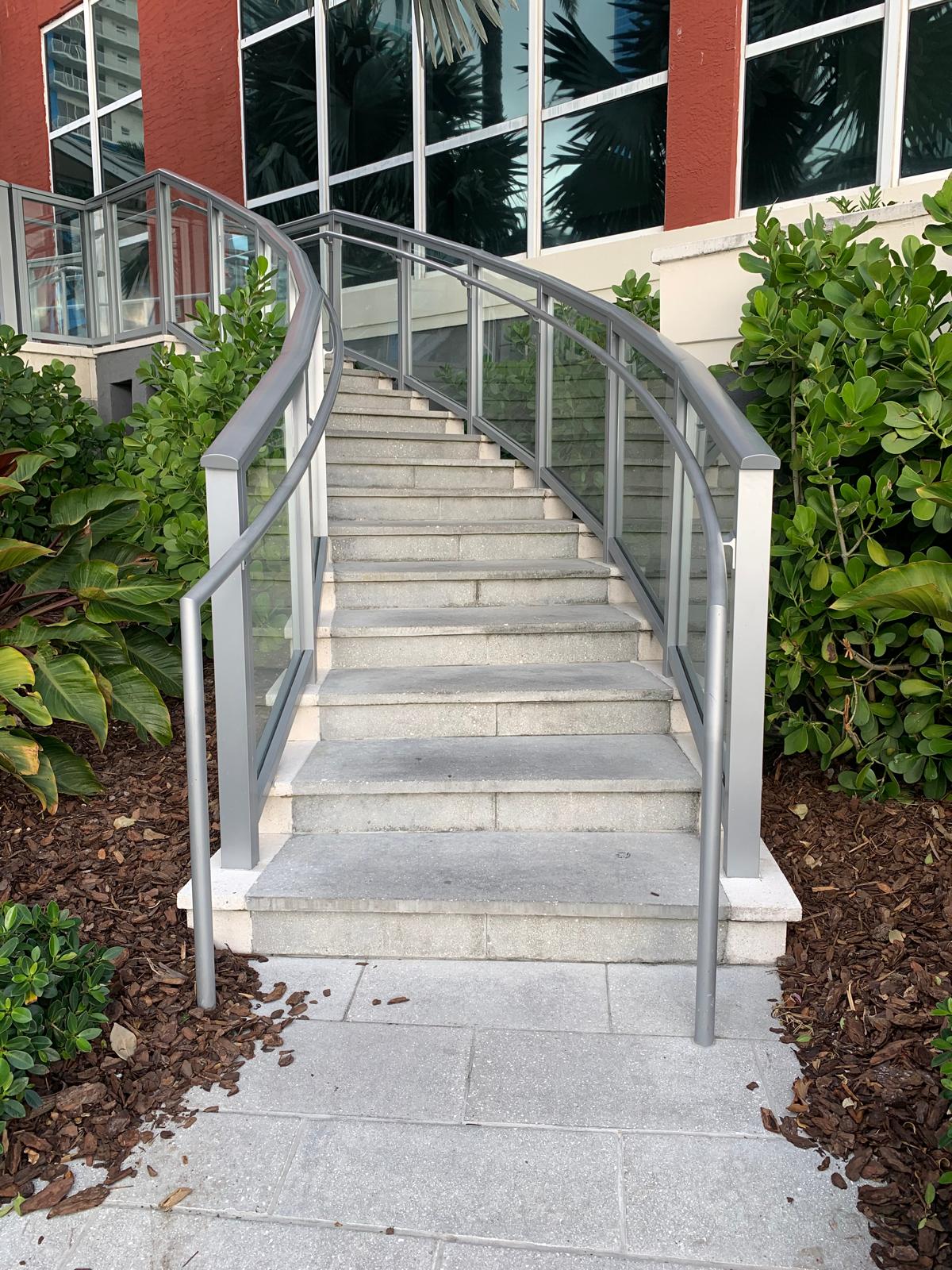 Alliance Architectural Products was entrusted with the fabrication and installation of a custom glass railing post system as part of The Mark Condo Lobby remodel project. This significant undertaking included enhancing the aesthetic and safety features of the lobby entrance stairs and ramps, which prominently feature a curved staircase.